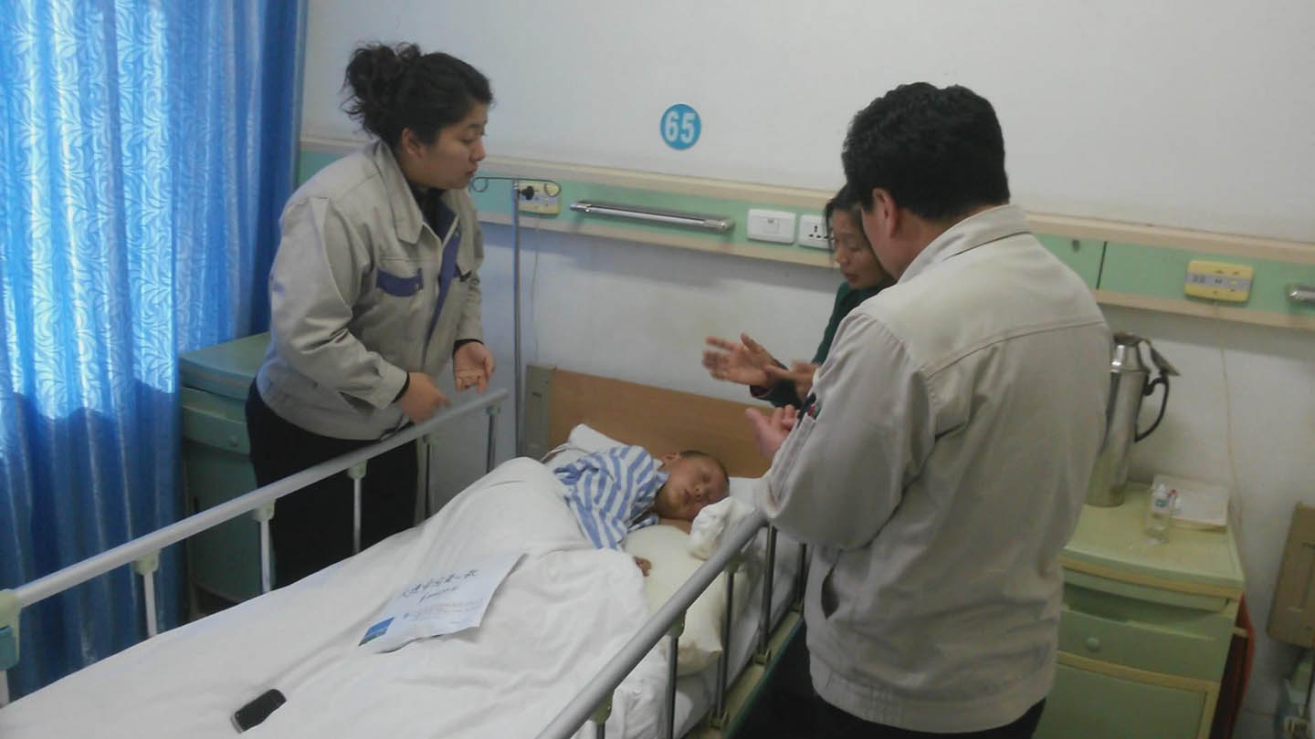 2月18日,由公司工會(huì)張?jiān)鰟傊飨涂倓?wù)部領(lǐng)導(dǎo)帶隊(duì),一行來(lái)到大連醫(yī)科大學(xué)附屬第一醫(yī)院看望了小英杰同學(xué),并把滿(mǎn)載公司450名員工愛(ài)心的募捐款親自送到了患者家屬手中。