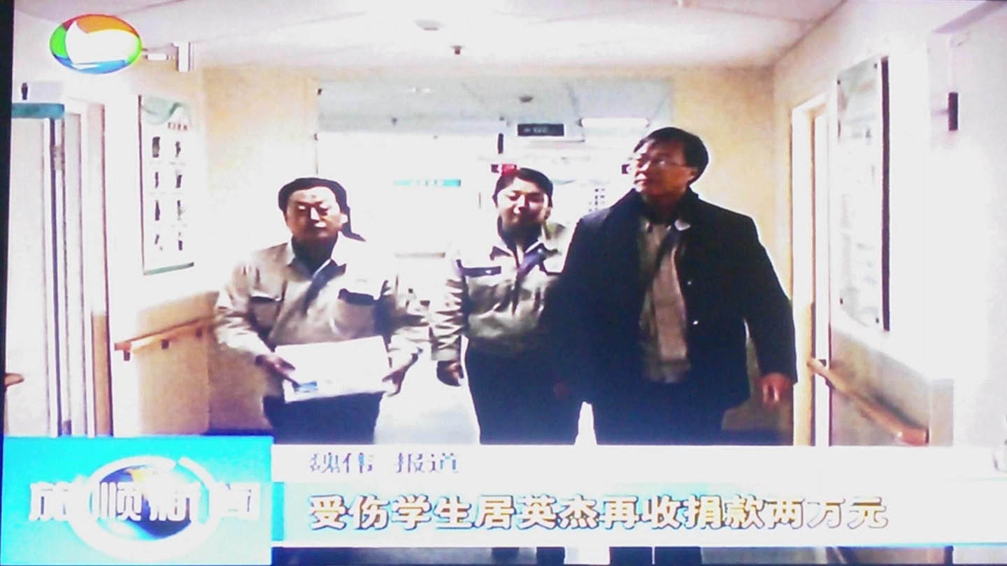 旅順電視臺(tái)還為此進(jìn)行了跟蹤報(bào)道。工會(huì)張主席在接受記者采訪時(shí)代表公司全體員工向病人家屬表示慰問(wèn):“希望小英杰堅(jiān)強(qiáng),積極配合治療,爭(zhēng)取早日返回校園。” 小英杰的母親感謝大連帝國(guó)公司員工雪中送炭,讓她們?nèi)覍?duì)小英杰的后期治療充滿(mǎn)信心,并表示等小英杰康復(fù)后會(huì)把余款捐助給偏遠(yuǎn)地區(qū)更加困難的人們。從醫(yī)院眼科主治醫(yī)師處了解到,小英杰入院時(shí)情況非常嚴(yán)重,經(jīng)搶救手術(shù),目前恢復(fù)良好:左眼視力1.0,右眼0.6,沒(méi)有失明危險(xiǎn),手指手術(shù)也非常成功。小英杰手術(shù)后首次開(kāi)口說(shuō)話,面對(duì)著圍在病床前的大連帝國(guó)的各位領(lǐng)導(dǎo),激動(dòng)地說(shuō):“謝謝大家對(duì)我的好,一輩子都不會(huì)忘記!”。