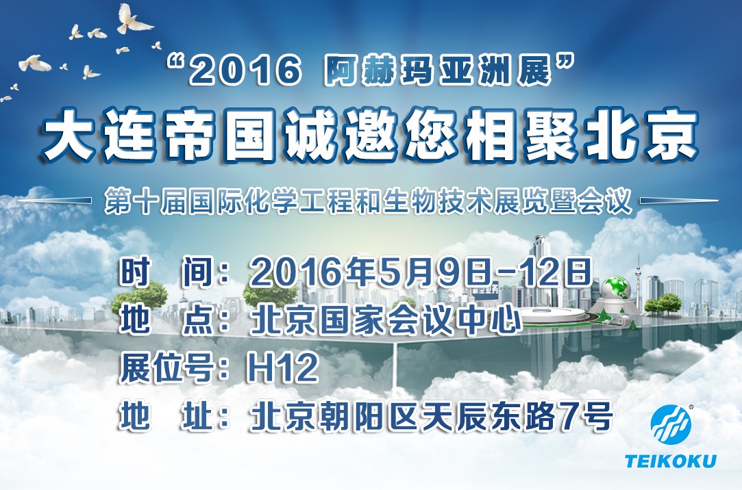 Dalian Teikoku will attend “2016 ACHEMASIA” from 9th to 12th, May, 2016. Welcome you to visit our company exhibition booth H12 on the occasion at China national convention center,Beijing.