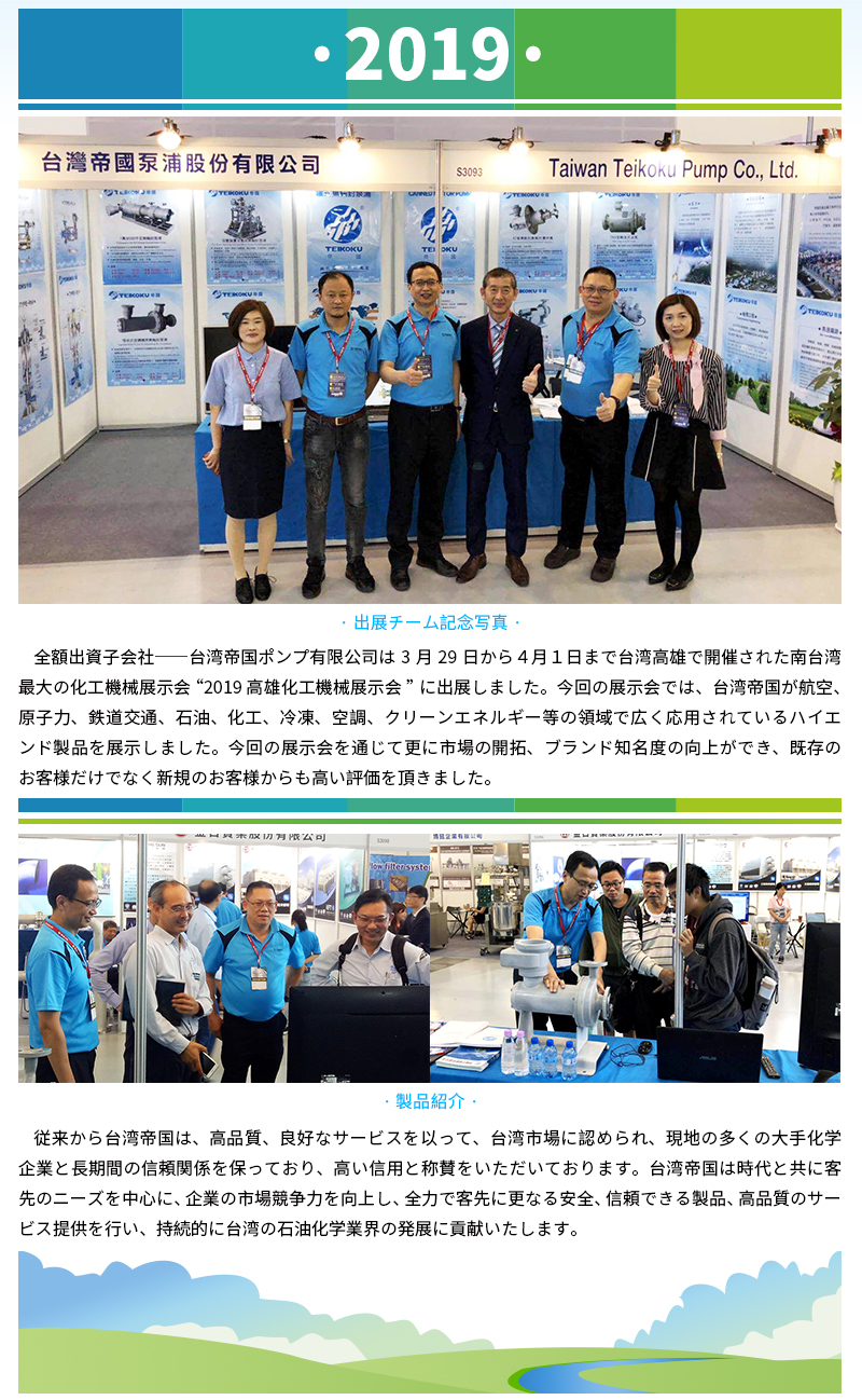 全額出資子會(huì)社臺灣帝國が2019高雄化工機(jī)械展示會(huì)に出展!