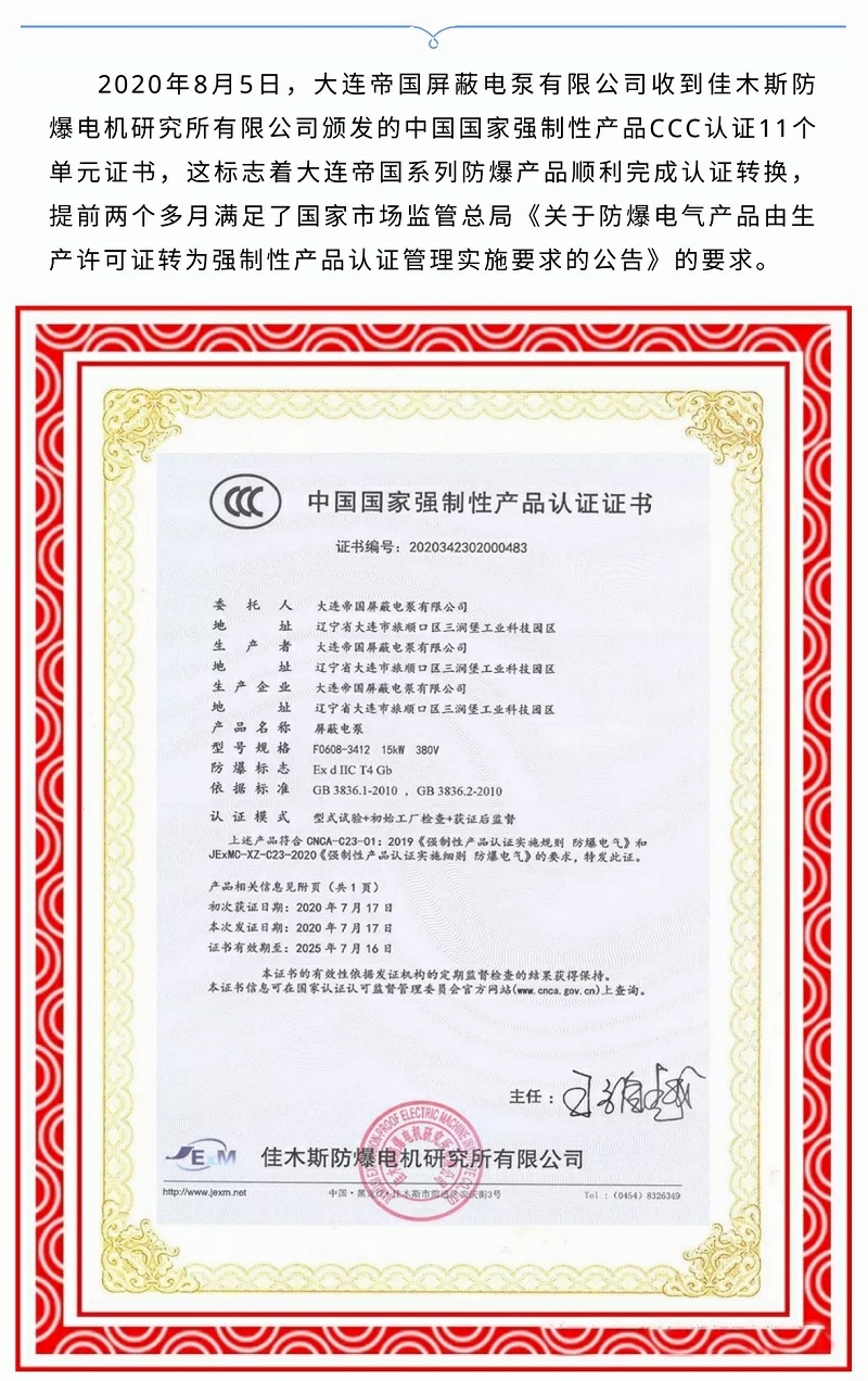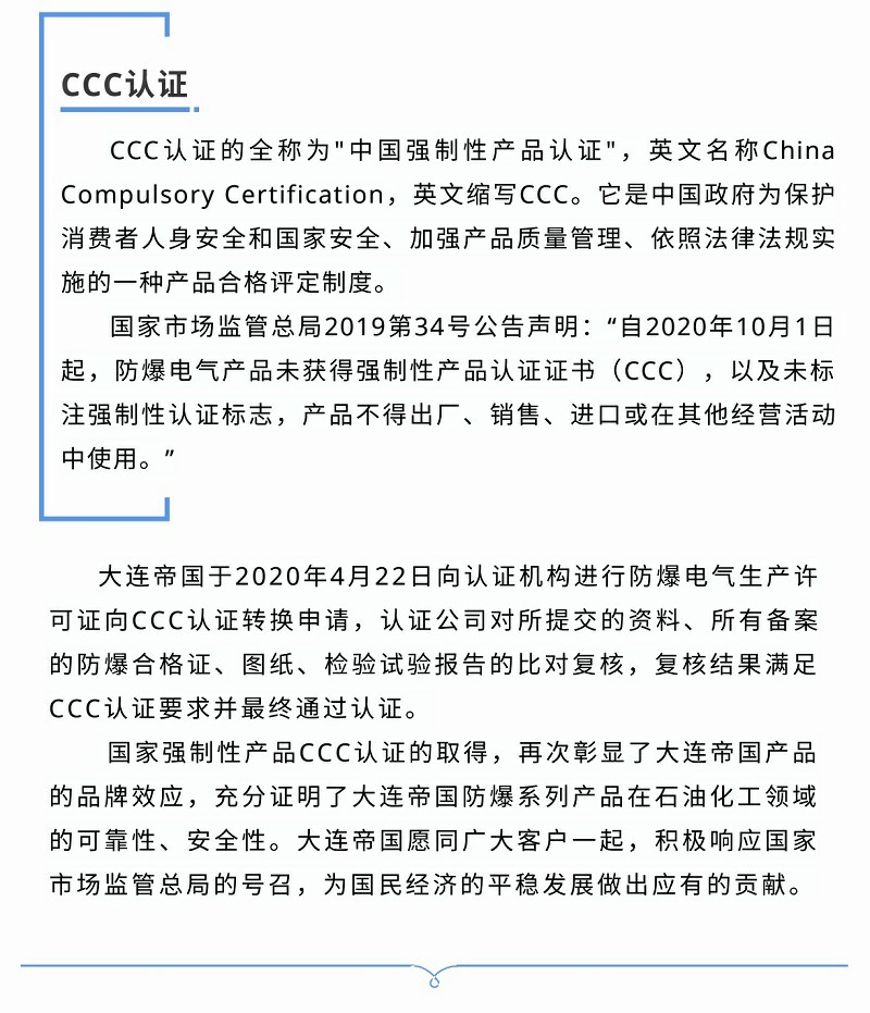 取得國家強制性產(chǎn)品CCC認證,大連帝國再次彰顯品牌效應(yīng)!