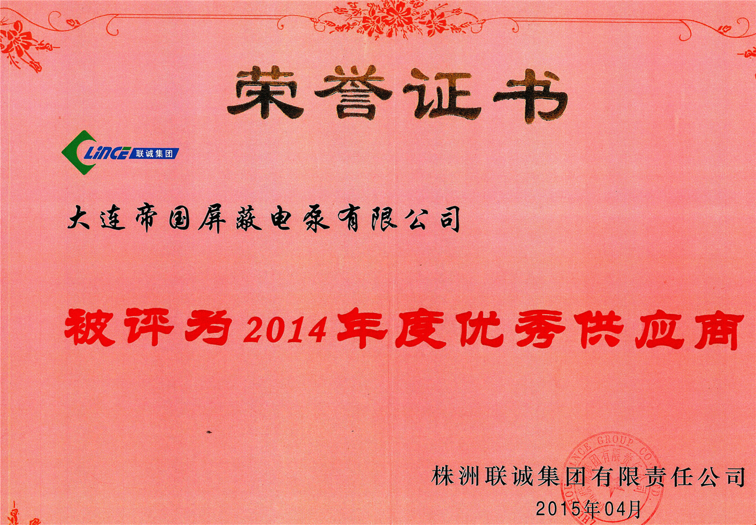 2015年4月24日、當(dāng)社は株洲聯(lián)誠(chéng)グループが主催されたサプライヤー年度総會(huì)においてサプライヤー306社の中で「納期、品質(zhì)、改善」などの評(píng)価がずば抜けて高かった理由から「2014年度優(yōu)秀サプライヤー賞」を受賞し、「栄譽(yù)証書」を拝受しました。